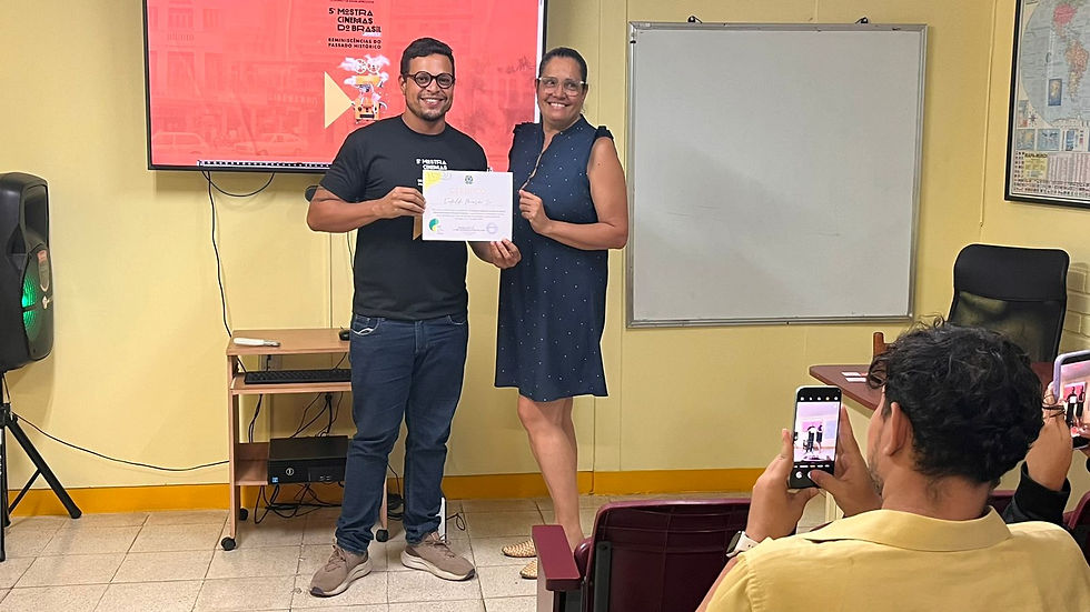 A abertura da sessão contou com a participação da coordenadora geral do Instituto Guimarães Rosa, Aline Lund, que realizou a apresentação institucional e entregou um certificado de agradecimento ao coordenador e curador da Mostra, Eudaldo Monção Jr., reconhecendo a relevância da iniciativa para o intercâmbio cultural entre Brasil e Nicarágua.